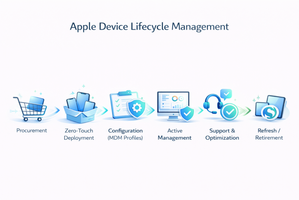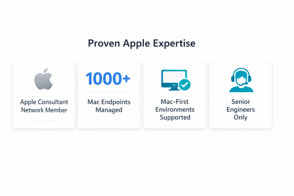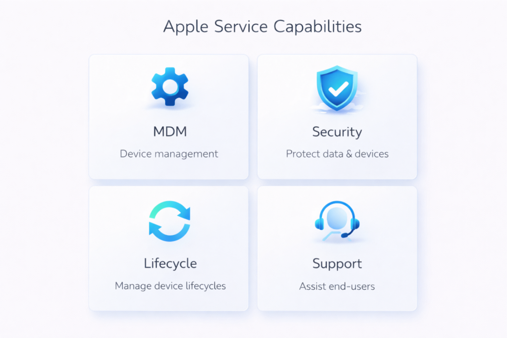 We become an extension of your team—providing strategy, deployment, management, and white-glove support tailored to Apple environments.